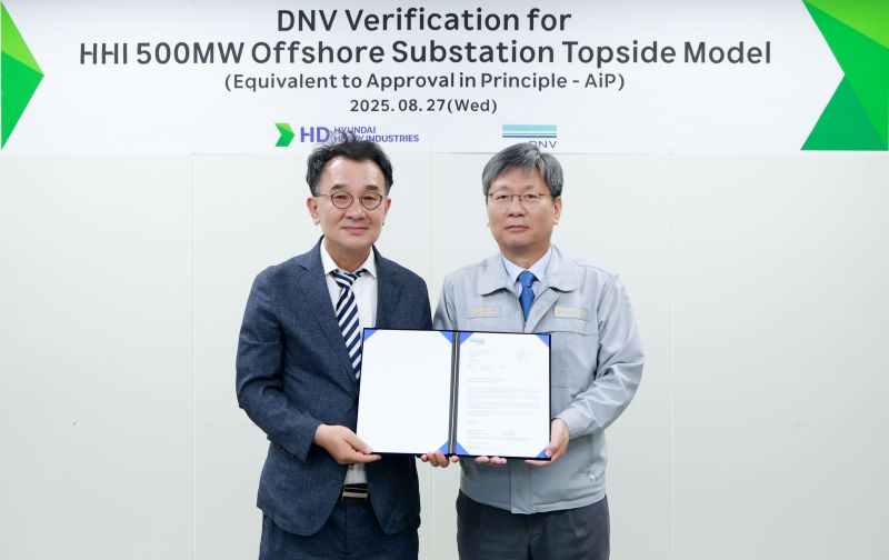 On August 27, HD Hyundai Heavy Industries (HHI) got a Verification Letter from DNV, showing that the design and technical documents of its 500MW Offshore Substation meet international standards.