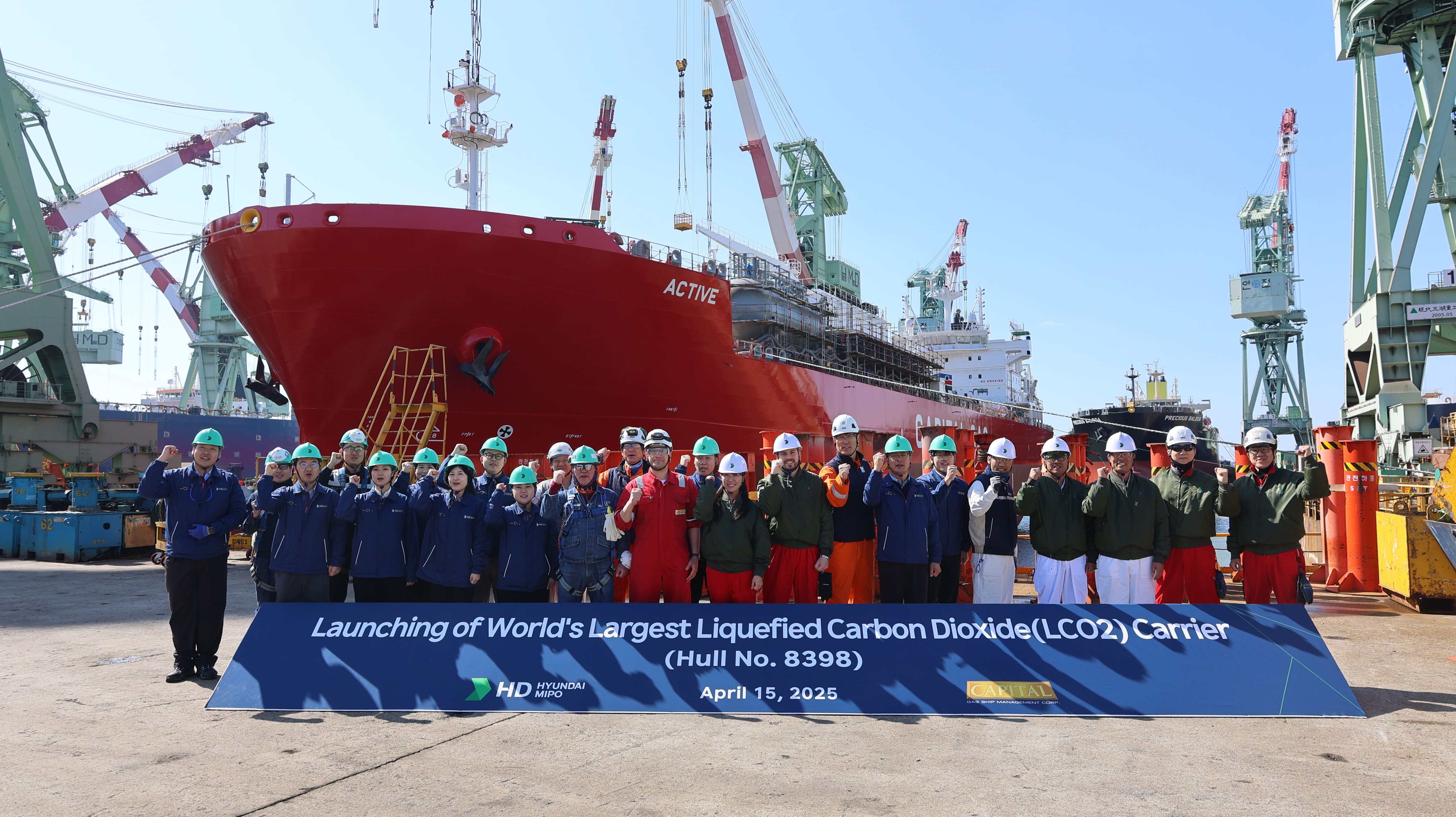 HD Hyundai Mipo (HMD), a shipbuilding subsidiary of HD Hyundai, announced on April 16 that it held a launching ceremony at Ulsan for a 22,000-cubic-meter LCO₂ carrier.